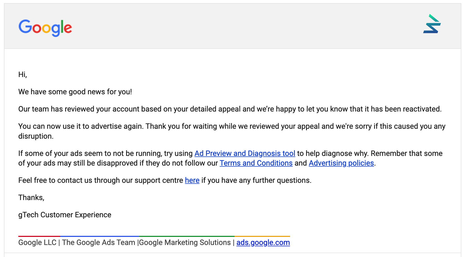 In most cases, it was a quick process to appeal and get the Google Ad account reactivated. However, the most challenging situation was the suspension of the Google Ad account for circumventing system policies. I have helped many clients troubleshoot this situation and get their Ad accounts enabled.